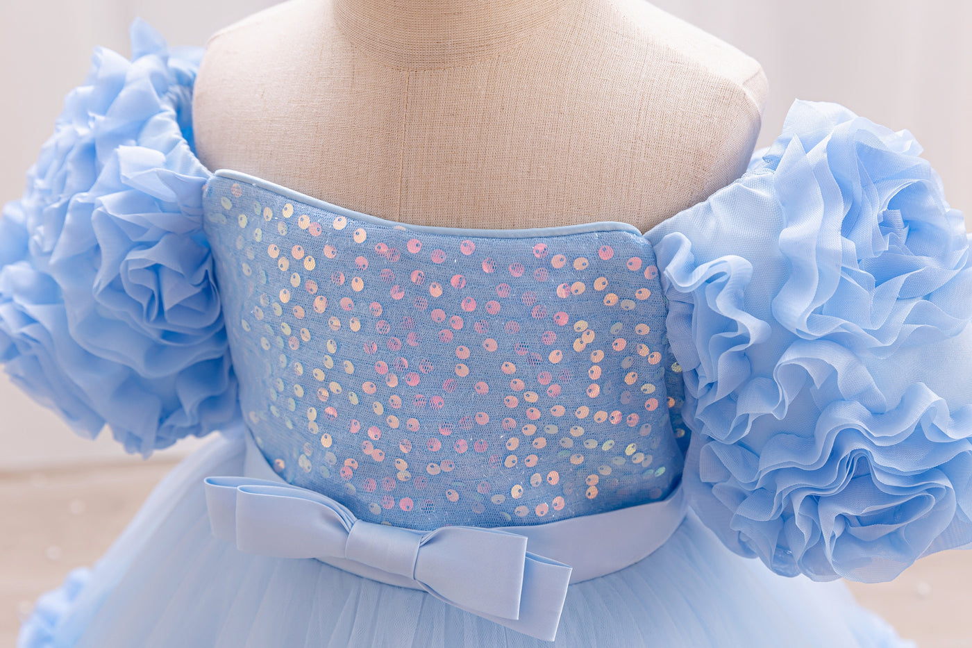 Elegant Girls' Pink Princess Dress with Sparkling Sequin Detail - Puff Sleeves, Knee-Length, Polyester & Viscose Blend, Perfect for Pageants, Hosting & Piano Performances, Princess Dresses for Girls - crimson / 9-12M