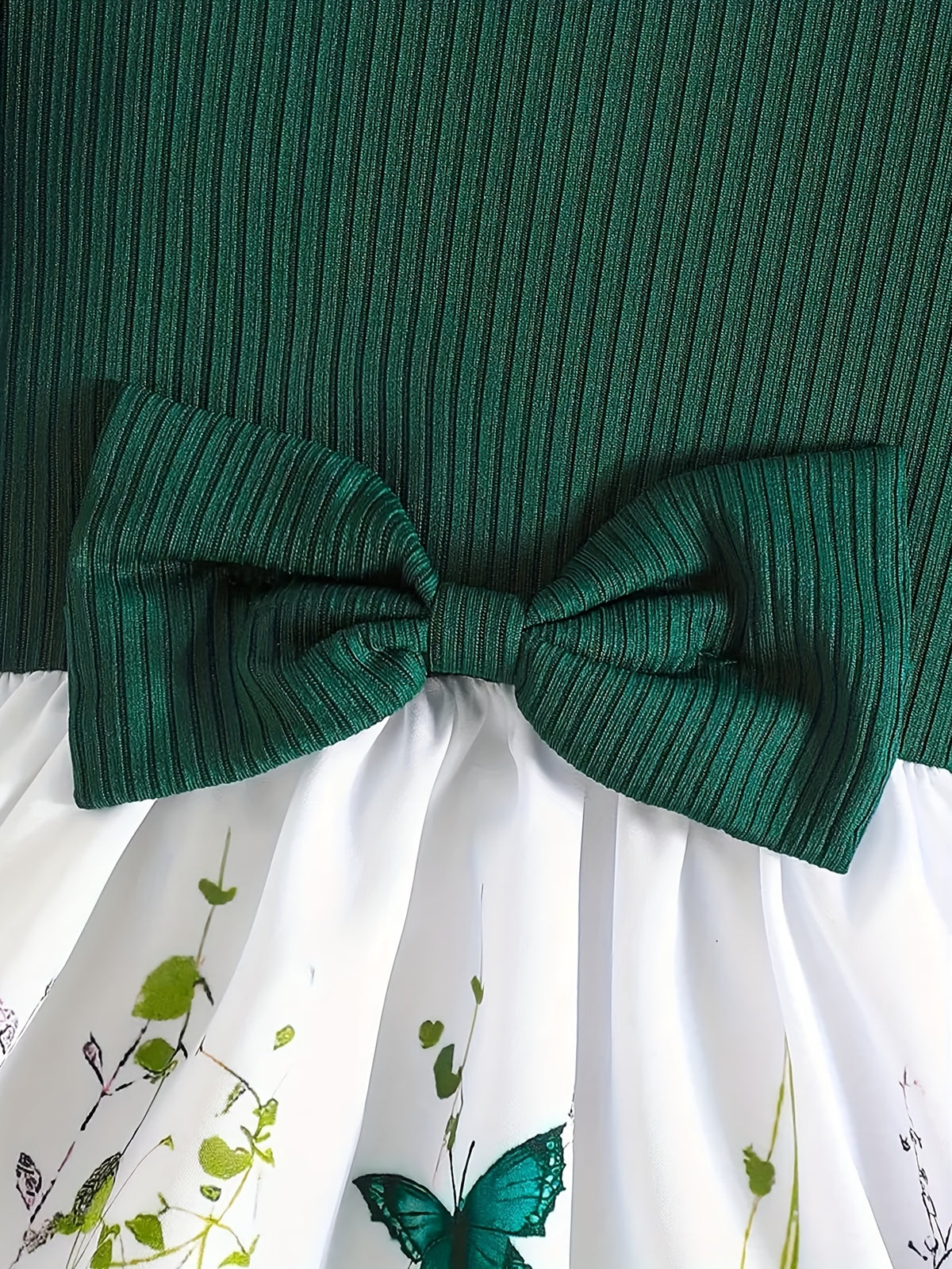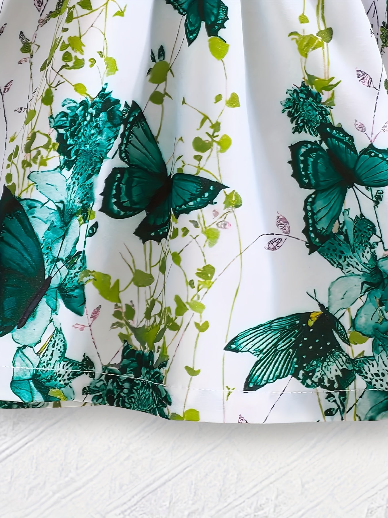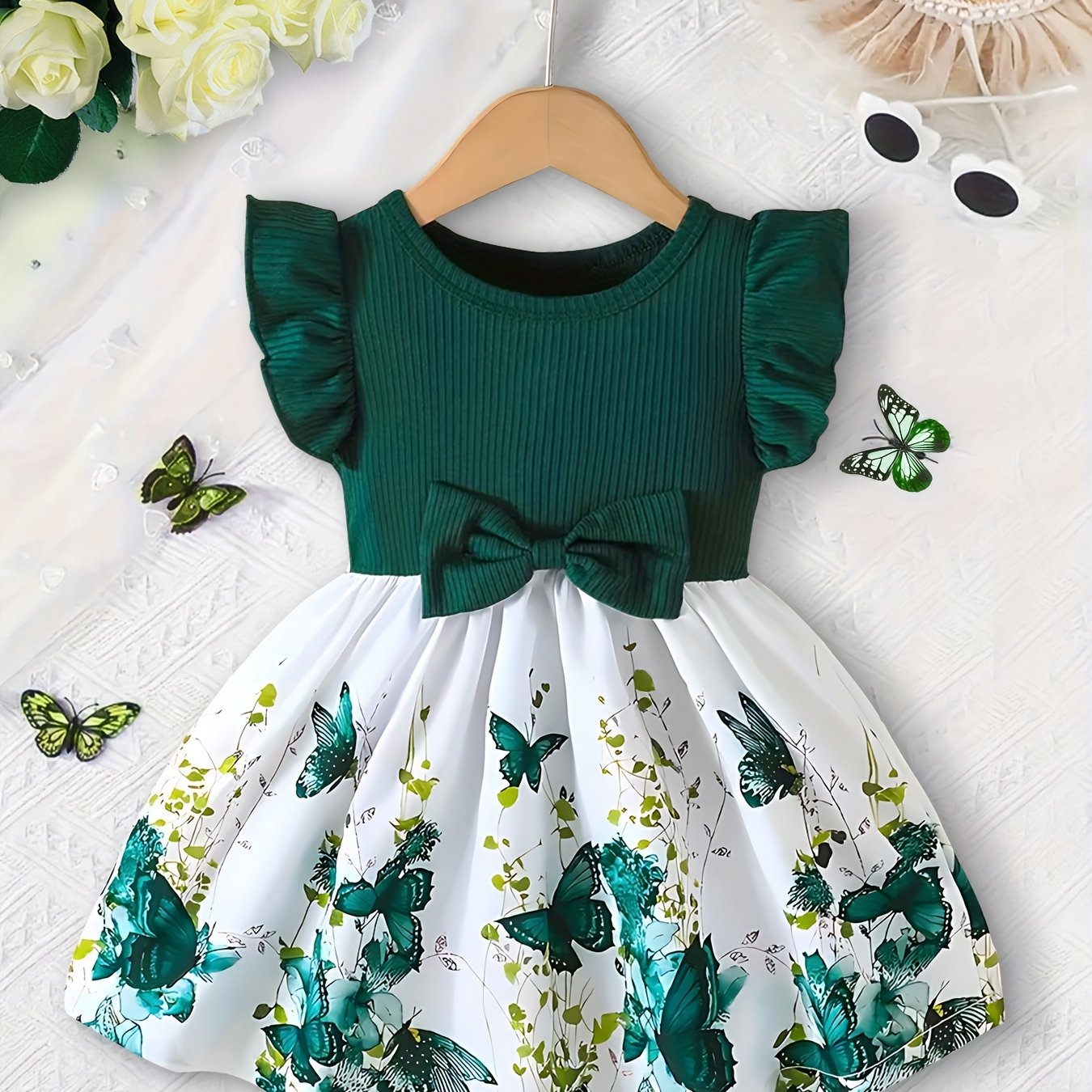 Girls' Spring/Summer Butterfly Print Dress with Bow Detail - Short Sleeve Round Neck A-Line Dress, Lightweight Breathable Fabric for Casual Outings & Playtime, Cute Toddler Dress, Playful Toddler Wear, Comfortable Toddler Wear